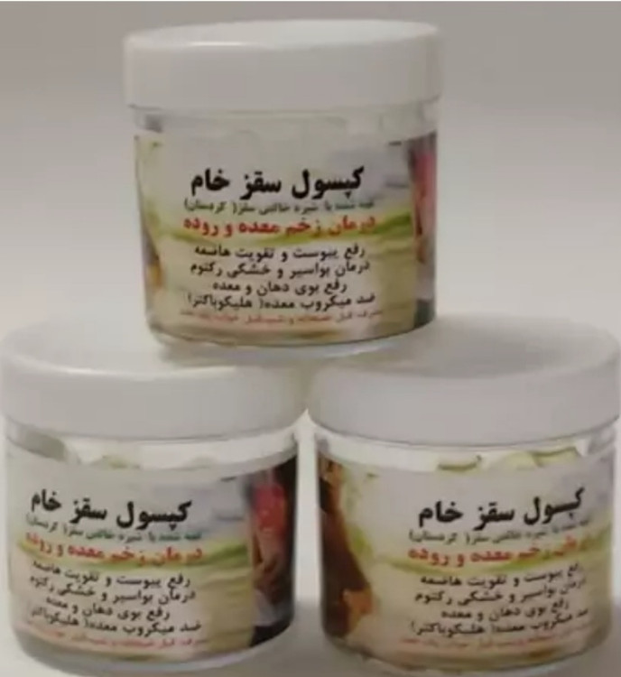 شیره خام درخت پسته وحشی(بنه،بطم،قسقوان،ون ) کاملا خالص و طبیعی تهیه شده از مناطق و کوه های کردستان کیفیت عالی و سرعت تاثیر بالا تعداد 30 کپسول 500mg در هر قوطی خواص و کاربرد:زخم معده و روده ،بواسیر ،ضعف گوارش و هاضمه، رافع اسید گوارش،عفونت های هاضمه،یبوست و یبوست های مزمن ، کولیت و آی بی اس و سردی گوارش بهترین روش مصرف: با شکم خالی خورده شود یا با اب یا عرق کلپوره و بابونه یا برای زخم های شدید با شربت یا جوشانده بلوط